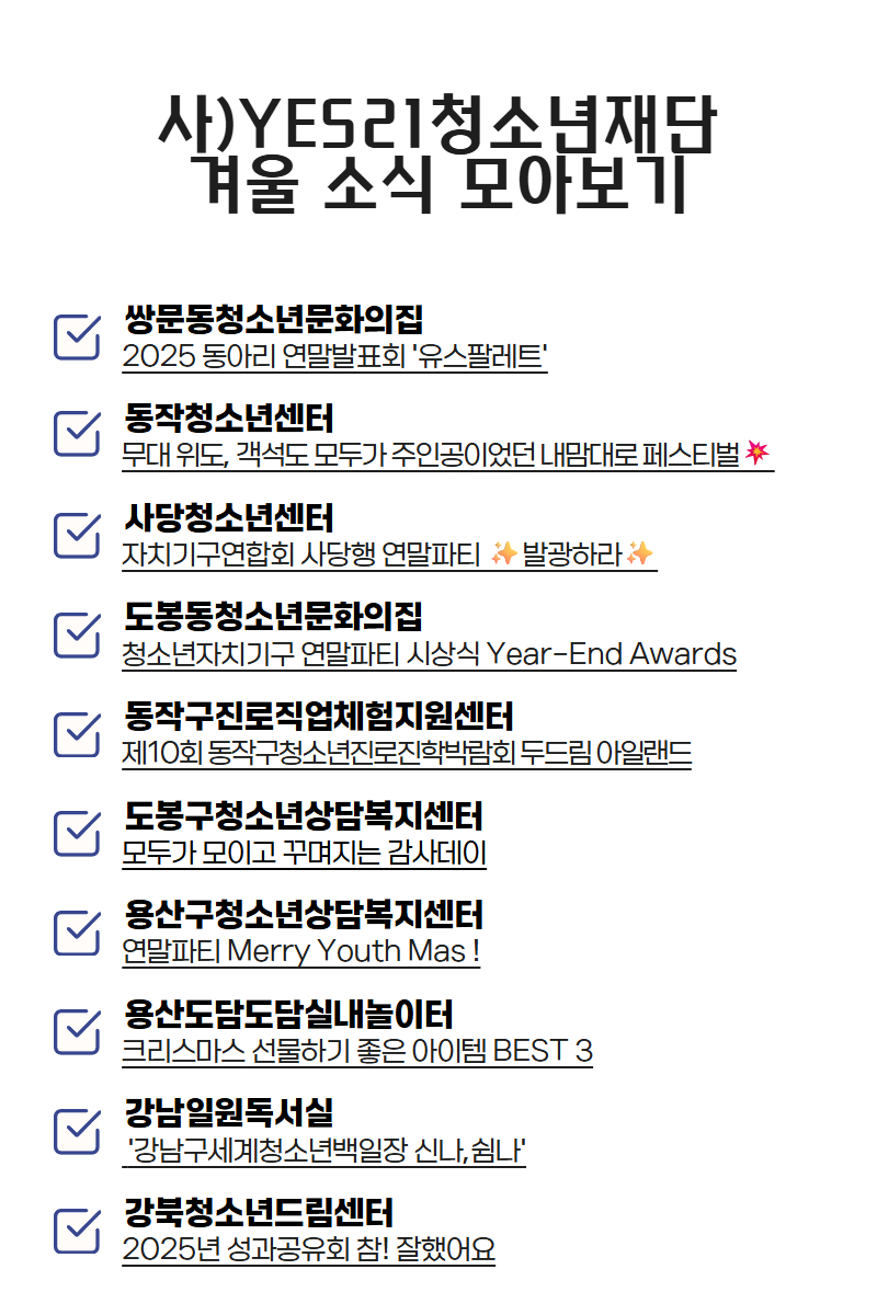 Copyright ⓒ 2022 사)YES21청소년재단 All rights reserved.