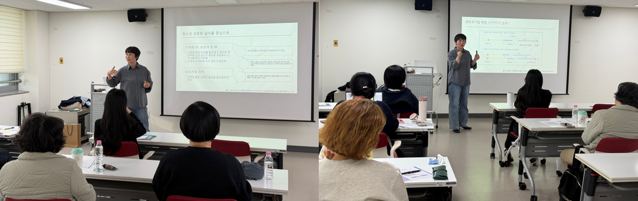 강연에서는 청소년 성상담의 실제적 접근과 생애주기별 성적 발달 이해, 디지털 성폭력 대응, 평등한 관계 형성, 성인지 감수성 향상 등