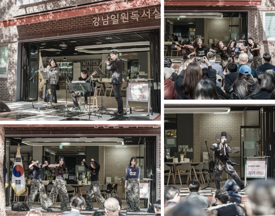 강남일원독서실 1층 작은 무대에서는 다양한 공연이 이어지며 축제 분위기를 더했습니다.