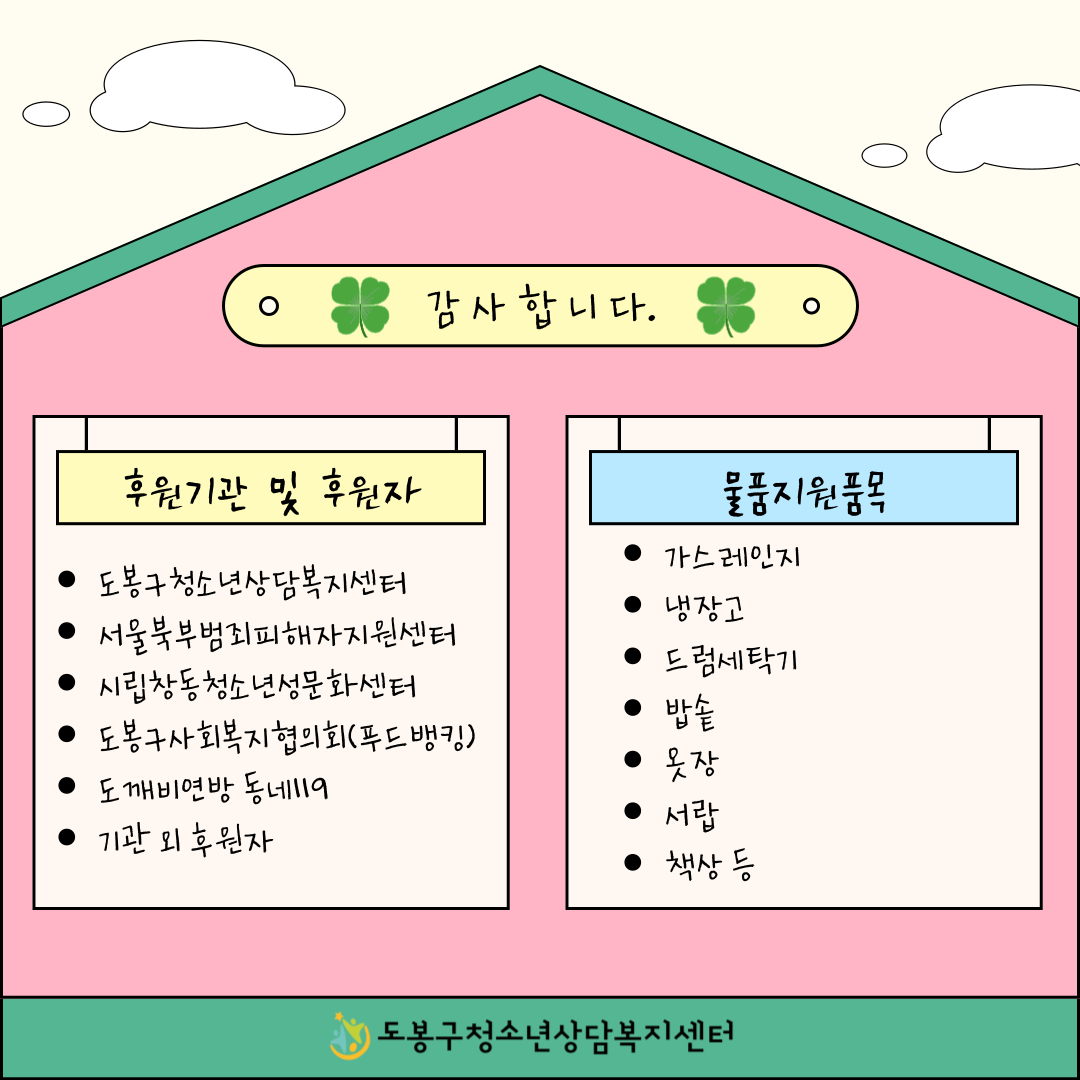 한가정에 도움을 주신 후원기관, 후원자분들께 감사에 인사드립니다.